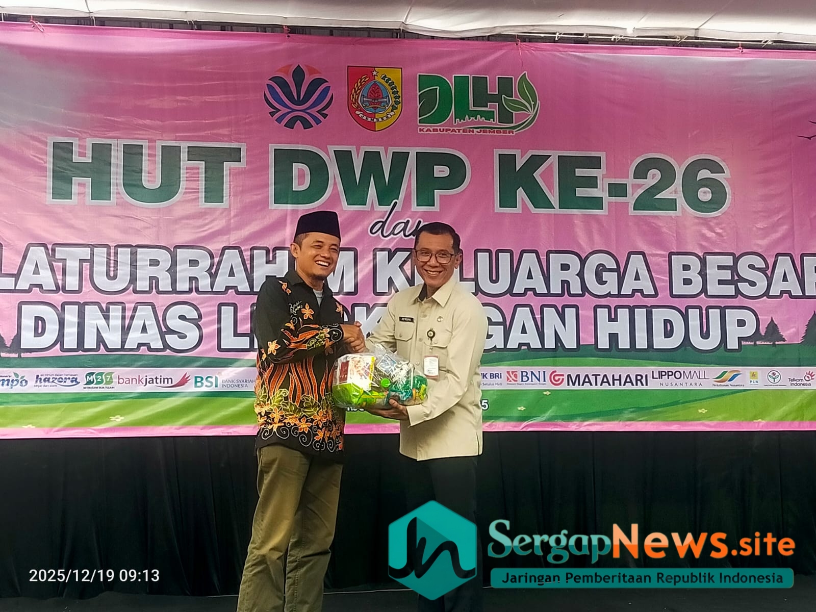 JEMBER,Sergap.news – Jelang purna tugasnya Drs. Supri Handoko hadir dalam acara Potong tumpeng acara HUT DWP Ke-26 dan Silaturahmi Keluarga Besar Dinas Lingkungan Hidup. Pemberian Apresiasi kepada Dharma Wanita sebagai istri PNS yang sudah mendukung pekerjaannya. Acara diadakan di kantor dinas lingkungan hidup. Jum’at 19 Desember 2025.