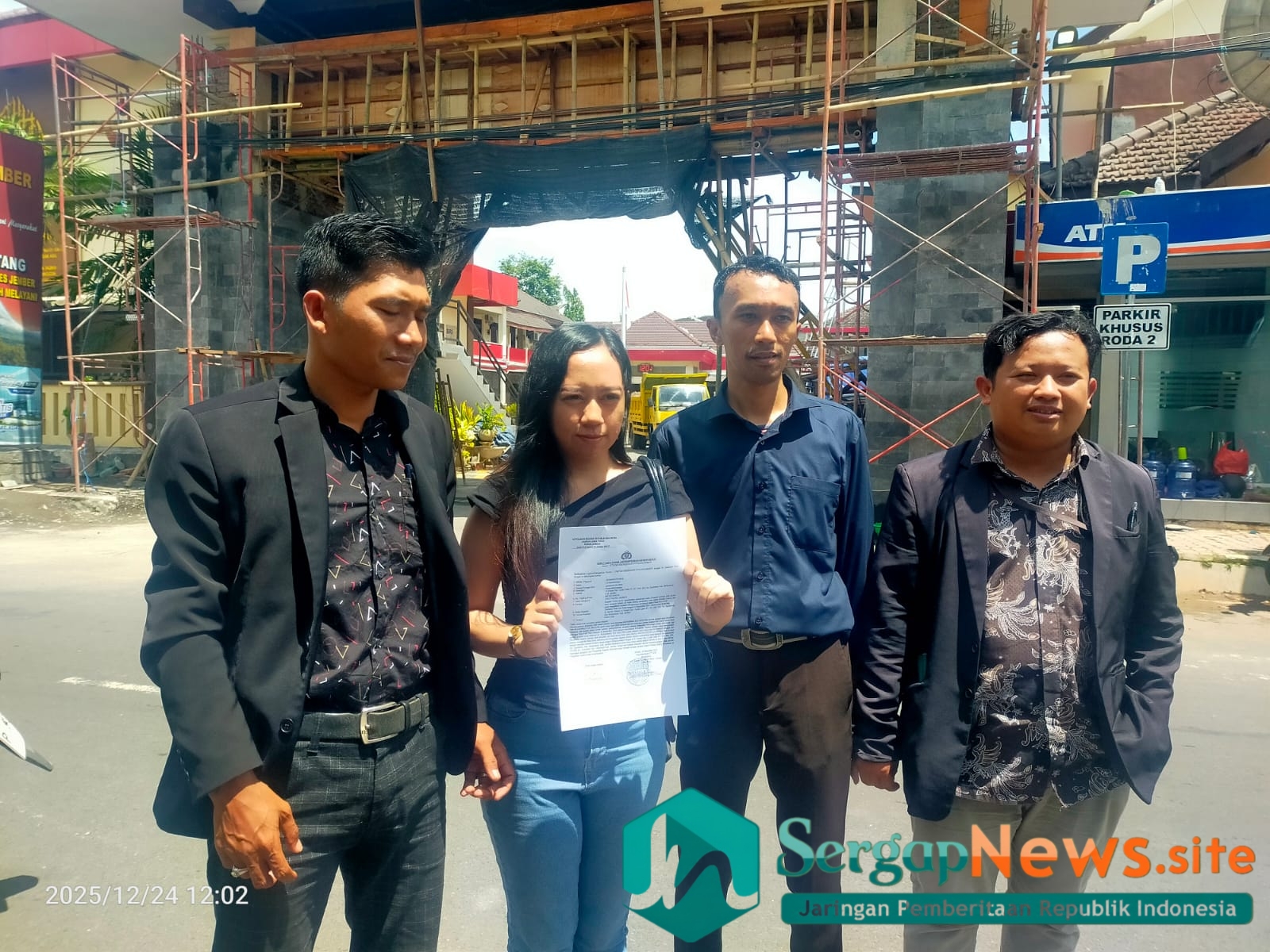 JEMBER, Sergap.news – Disuasana yang cukup cerah, di Polres Jember hadir seorang perempuan, Fitrianingsih (28) warga Desa Gambirono Bangsalsari Jember, Rabu (24/12/2025) dengan didampingi kuasa hukumnya Anwar Nuris SH., mendatangi SPKT Mapolres Jember.