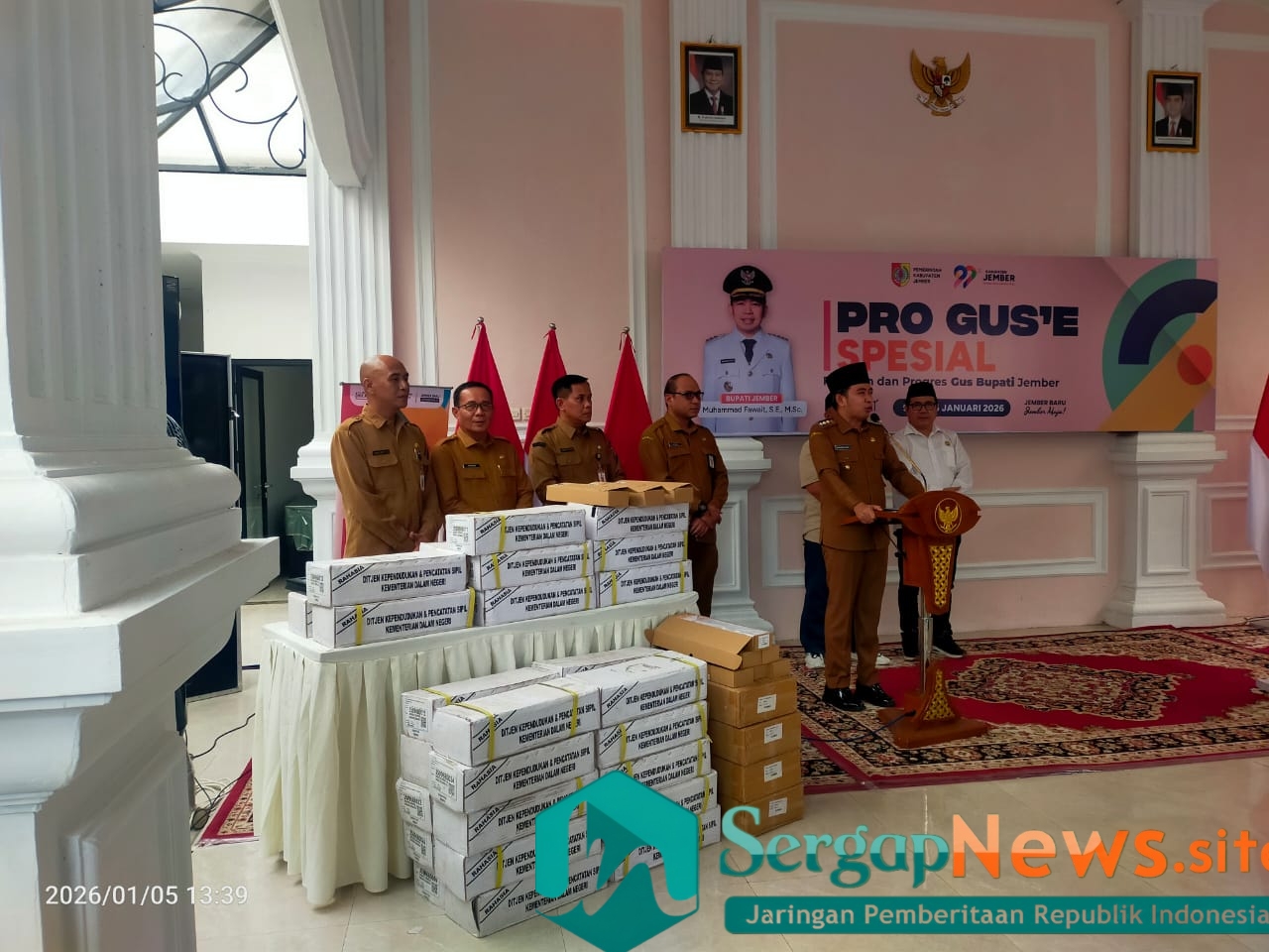 Jember, Sergap.News – Pro Gus’e hadir di Kecamatan Jenggawah, Kabupaten Jember. Launching Peta Cinta ( Pelayanan Tuntas Cetak KTP- el di Kecamatan Jenggawah ) di hadiri lansung oleh Bupati Jember. Senen ( 05/01/2025 )